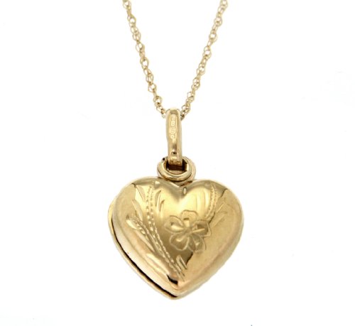 9ct Yellow Gold Heart Flower Locket on Prince of Wales Chain 46cm