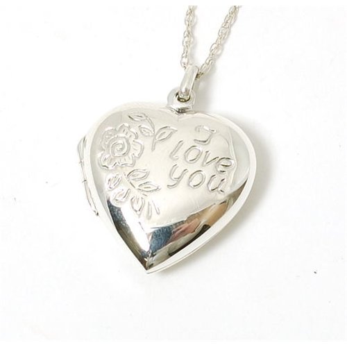 925 Silver Puffed I Love You Heart Locket 18" Chain By The Olivia Collection. This brand new twist to our traditional lockets, is simply gorgeous and will hold your precious mementos close! One side of the puffed heart is engraved with I Love You and a pretty flower pattern on one side, whilst the other side is a smooth polished silver surface. The locket opens up to fit two pictures, each 1.7cm in height.